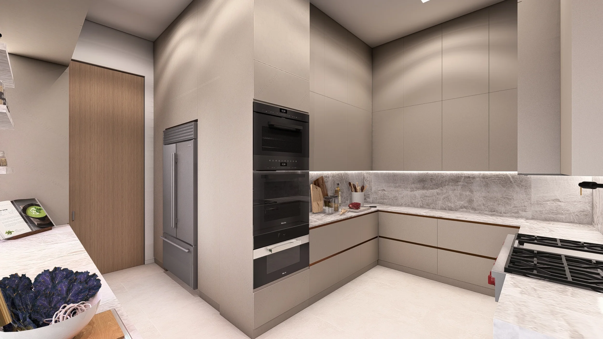 Integrated LED lighting, seamless stone, glass, and metal accents, decorative moldings and trim, and Bespoke shelving and storage solutions tailored to your space.